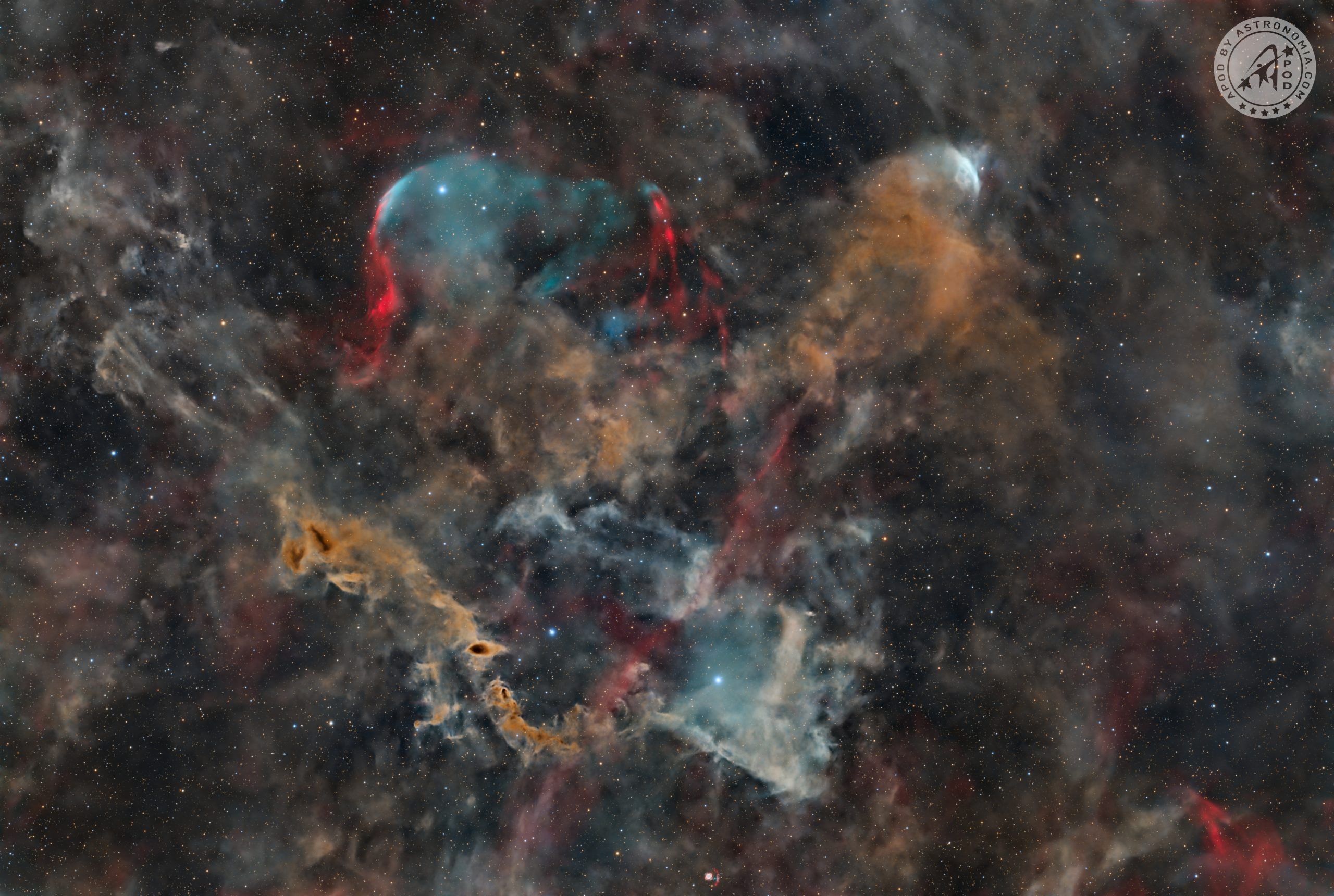 È stato un progetto molto lungo e complicato, diverso da qualsiasi altro precedente. Dato che nessuno di noi aveva un hosting o qualcosa di simile, ci sono voluti molti mesi di lavoro sul campo, lavorando instancabilmente sullo stesso oggetto – letteralmente “con piccone e pala” – per accumulare 157 ore di esposizione. Questo è il resto di supernova Scylla G115.5, situato nella costellazione di Cefeo. Nella parte inferiore dell’immagine, è visibile anche la piccola nebulosa planetaria PN Minkowski 2-55.