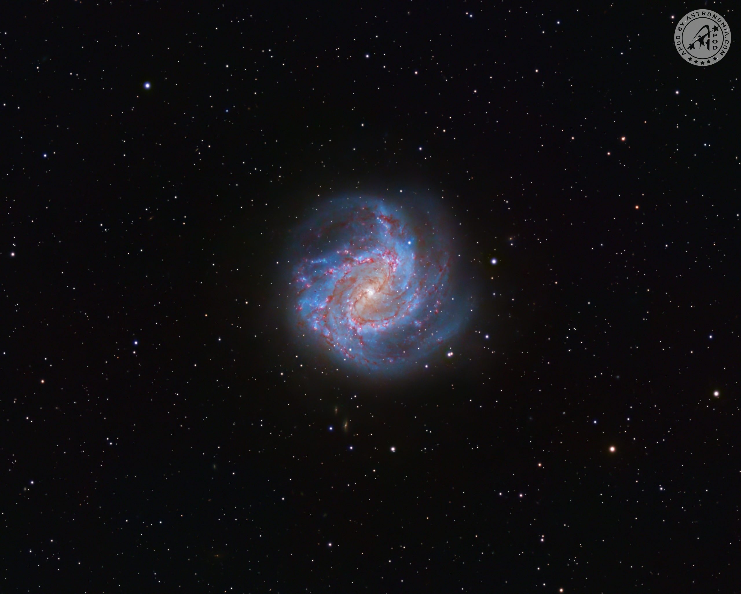 La Galassia Girandola Meridionale (M83) nella costellazione dell’Idra possiede quasi tutte le caratteristiche che un astrofilo potrebbe desiderare. Questa splendida galassia a spirale barrata si estende per ben 14′ e, con una magnitudine di 7,5, si colloca tra le 10 galassie più brillanti del cielo. Il suo unico svantaggio è la posizione: con una declinazione di -30°, si trova più a sud di qualsiasi altra galassia nel catalogo di Messier. M83 si distingue per i suoi suggestivi bracci a spirale, ricchi di scintillanti ammassi stellari blu e delle nebulose a emissione rosate che li generano. Gli astronomi ritengono che l’elevato tasso di formazione stellare della galassia derivi da un incontro con un’altra galassia. Alcuni ricercatori sospettano che la causa sia la vicina galassia nana irregolare NGC 5253, mentre altri indicano un possibile secondo nucleo nel nucleo di M83 come residuo della galassia in questione.